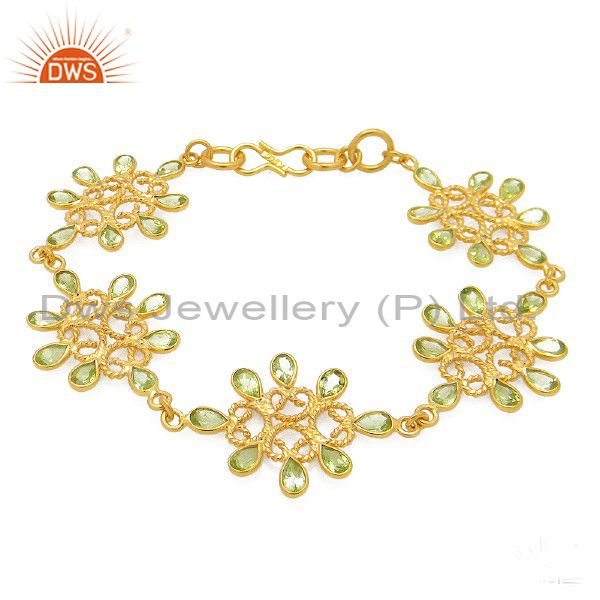24K Yellow Gold Plated Sterling Silver Peridot Gemstone Designer Bracelet