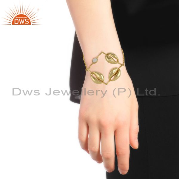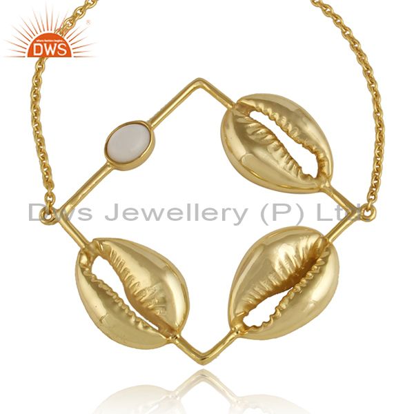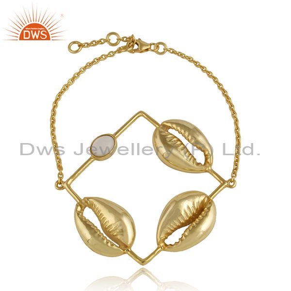 3 Cowrie Design Mother of Pearl Gemstone Gold Plated Silver Bracelet