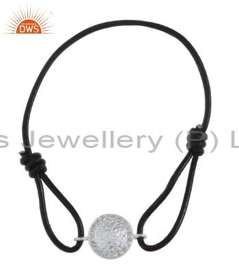 925 Solid Sterling Silver Disc Charms Black Cord Macrame Bracelet