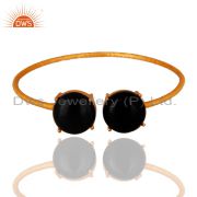 925 Sterling Silver Black Onyx Gemstone Bracelet - Yellow Gold Plated
