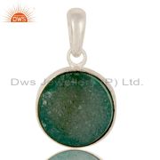 925 Sterling Silver Green Druzy Agate Bezel Set Chain Bracelet With Lobster Lock