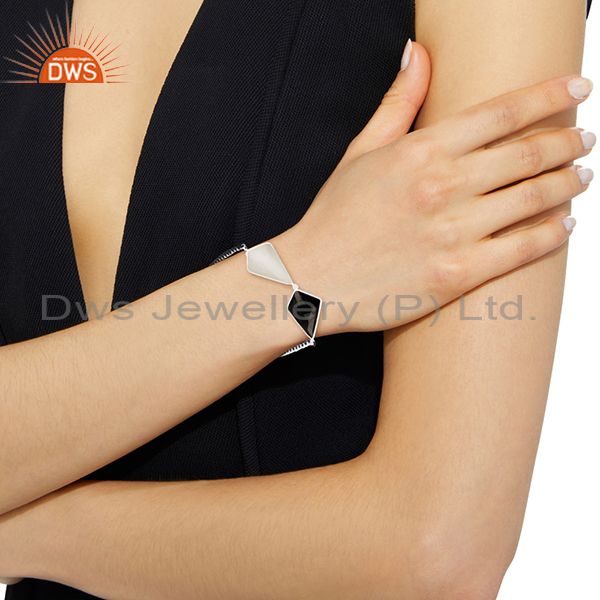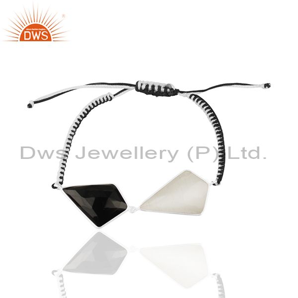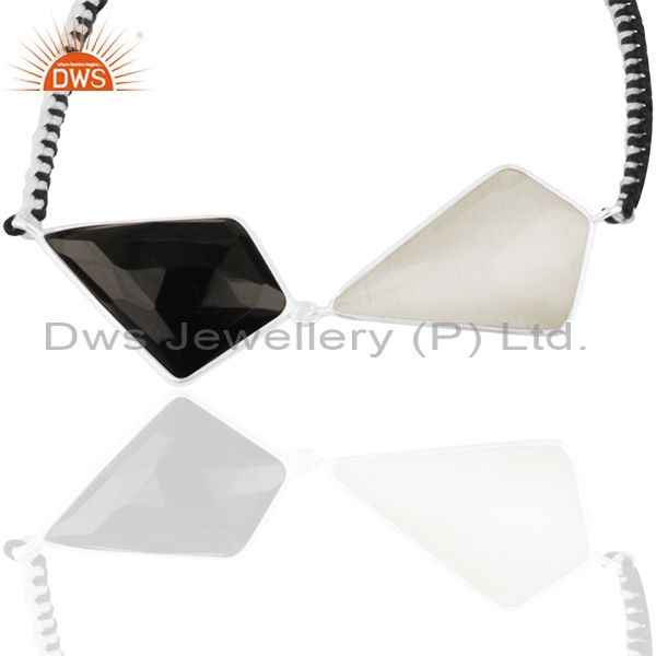 925 Sterling Silver Hand Made Black Onyx & White Moonstone Macrame Bracelet