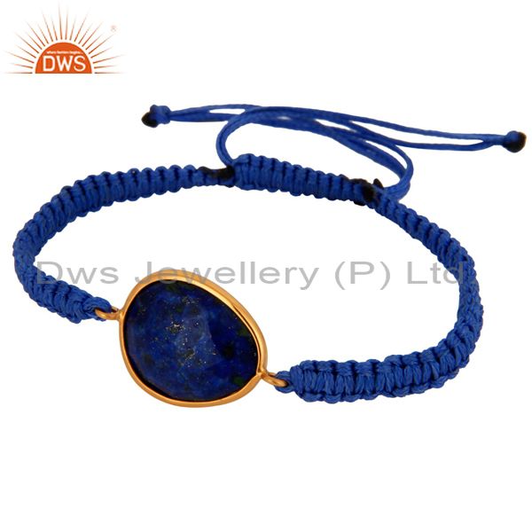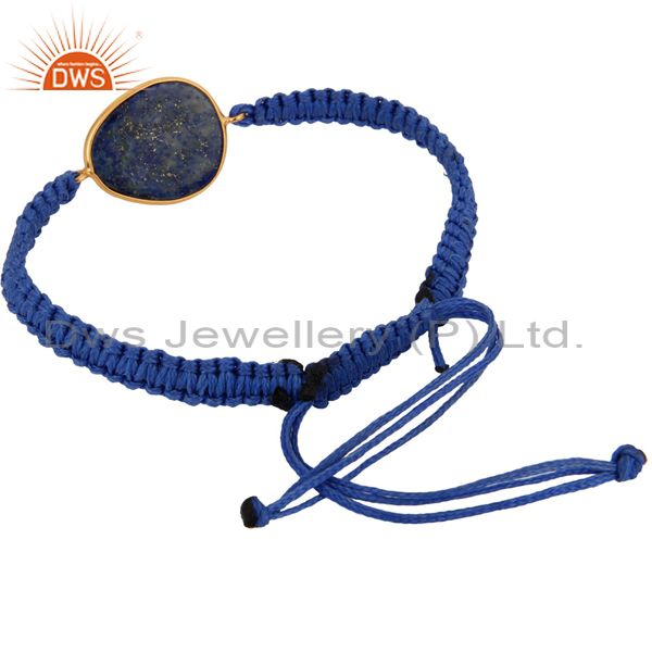925 Sterling Silver Lapis Lazuli Gemstone Channel Link Macrame Knot Bracelet