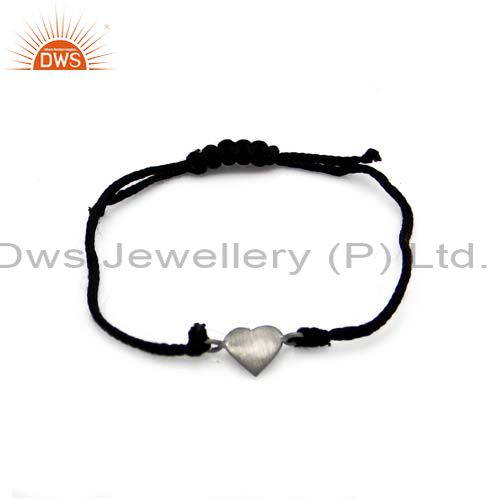 925 Sterling Silver Oxidized Heart Charm Black Cord Macrame Bracelet