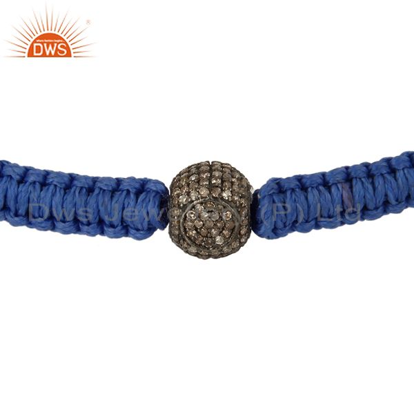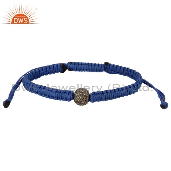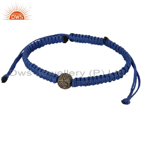925 Sterling Silver Pave Diamond Beads Macrame Fashion Stretch Bracelet