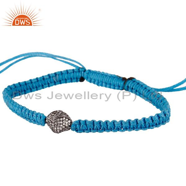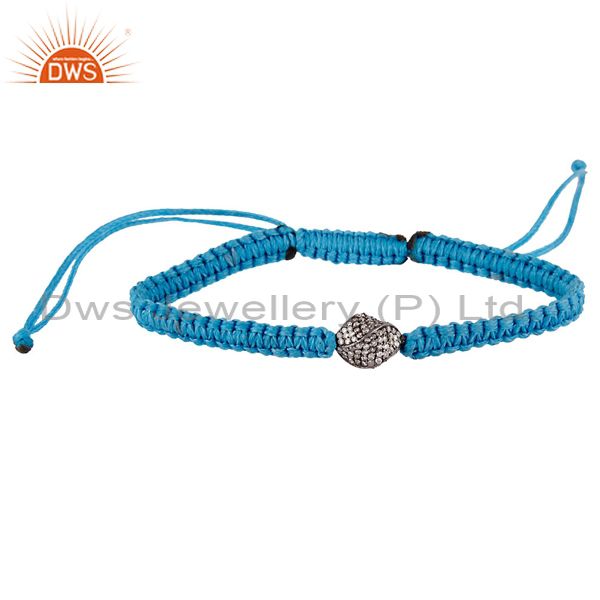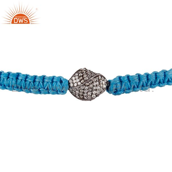 925 Sterling Silver Pave Set Diamond Bead Spacer Macrame Bracelet