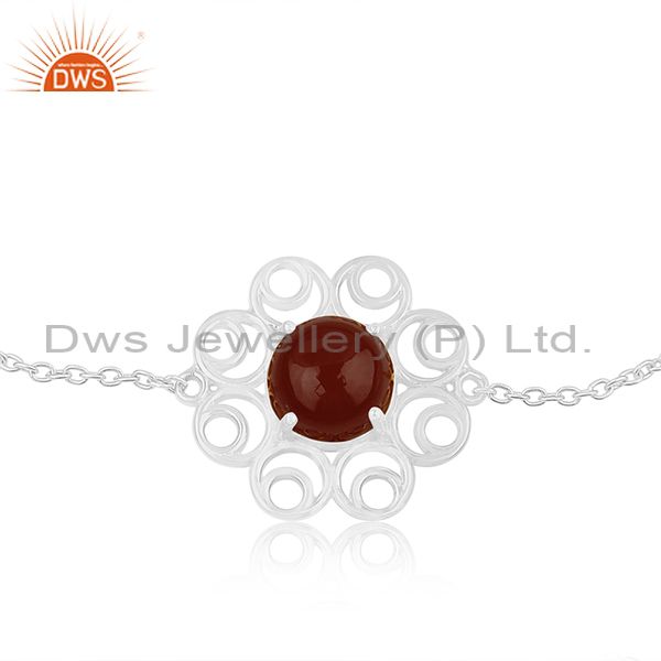 925 Sterling Silver Red Onyx Gemstone Designer Chain Bracelet For Womens