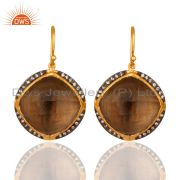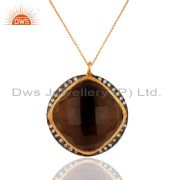 925 Sterling Silver Smoky Quartz Gemstone Gold Plated Chain Bracelets With Cz