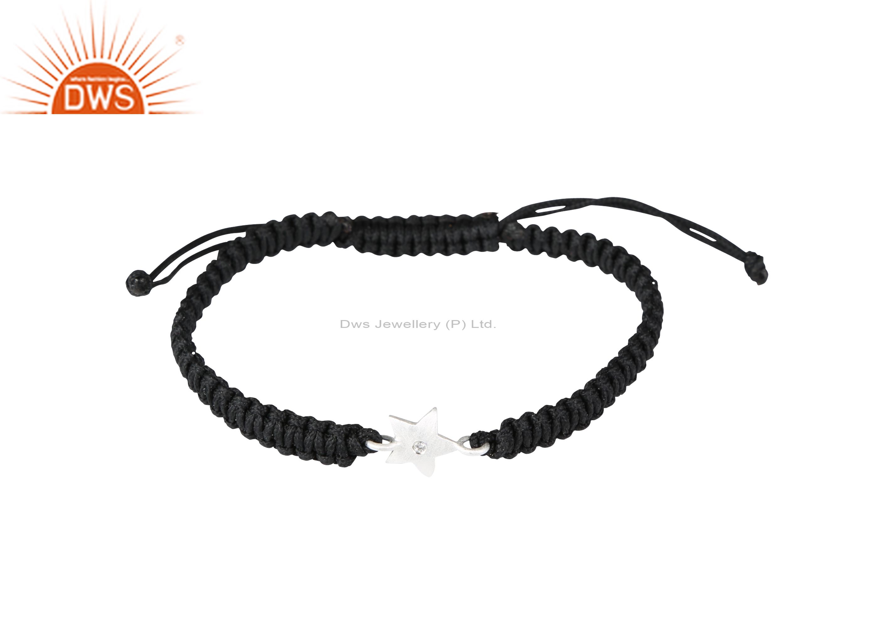 925 Sterling Silver White Topaz Star Charm Adjustable Black Macrame Bracelet