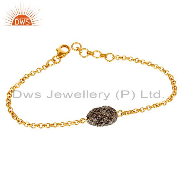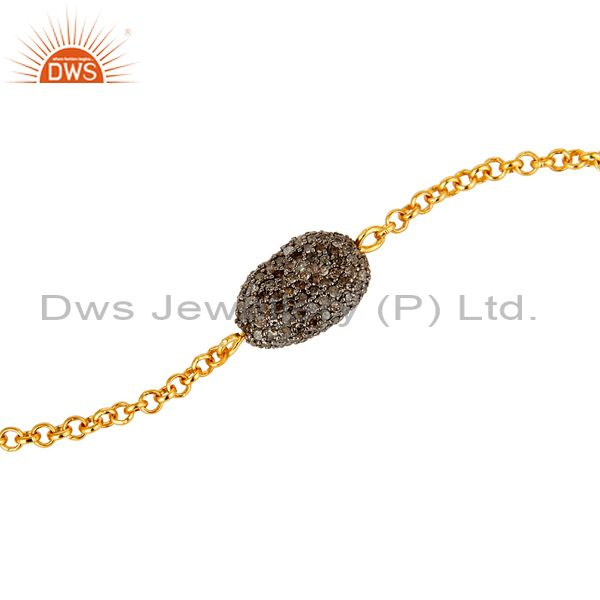 925 Sterling Silver with 18k Gold Plated Pave Set Diamond Open Bracelet