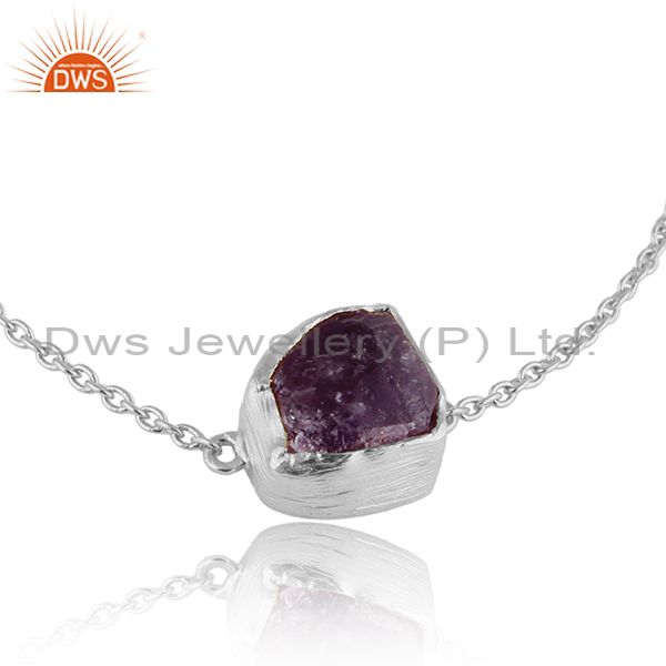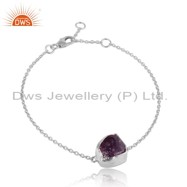 Amethyst Gemstone Designer Sterling Fine Silver Chain Bracelet