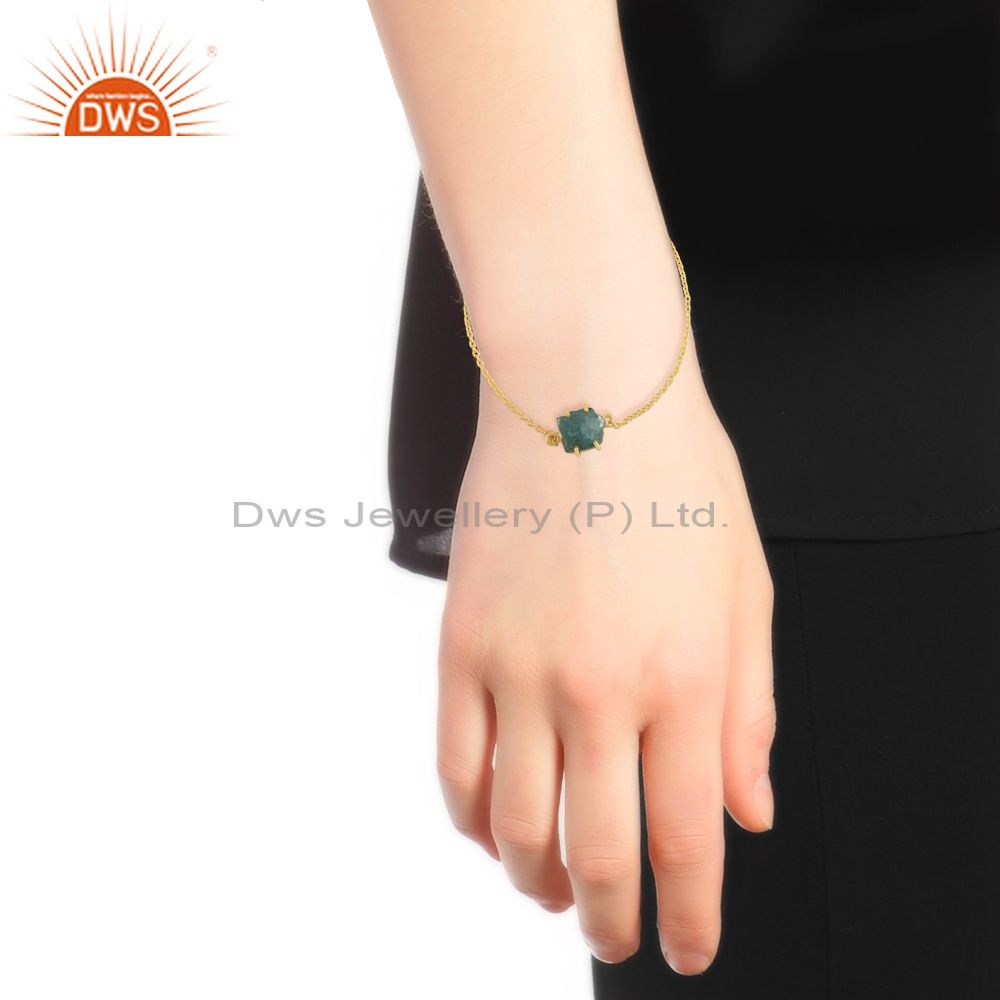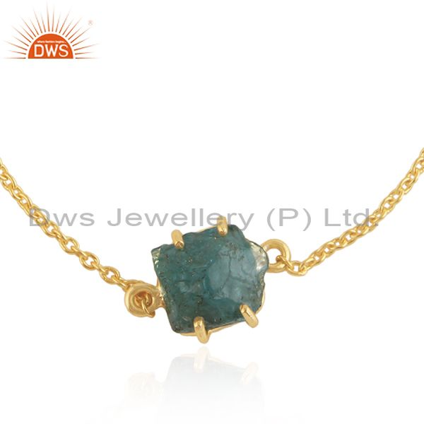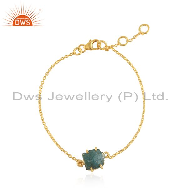 Apatite Gemstone Gold Plated Designer 92.5 Silver Chain Bracelet