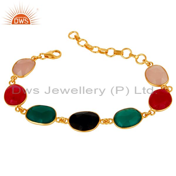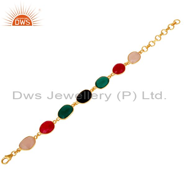 Aventurine Onyx And Chalcedony Multi Color Handmade Gold Plated Silver Bracelet