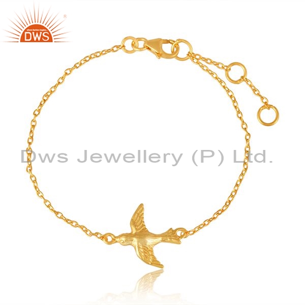 Bird Model Sterling Silver Gold Chain Bracelet In 18K