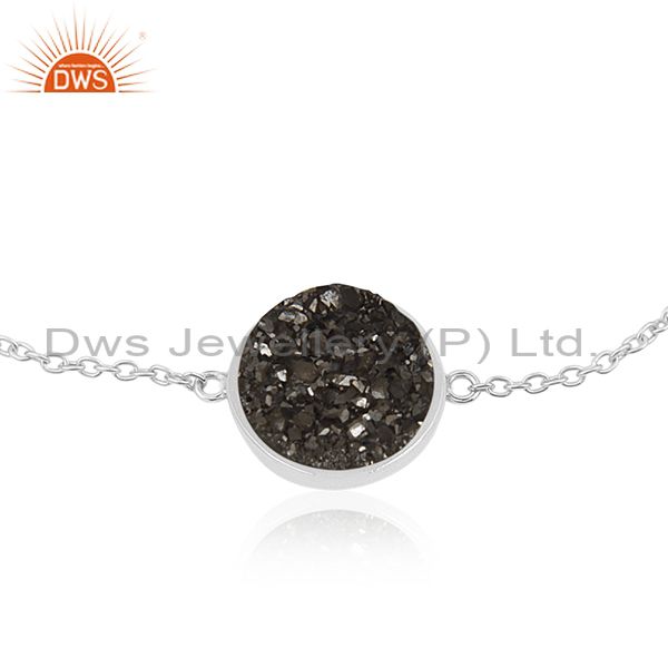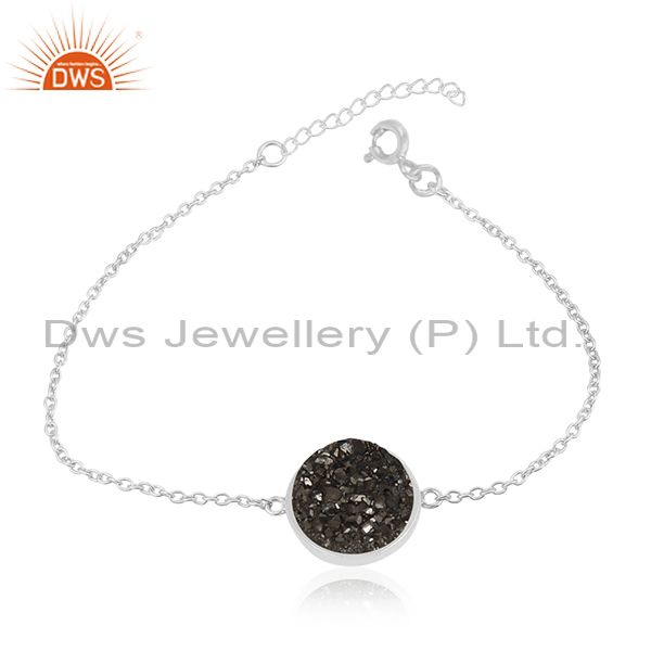 Black Druzy Solid 925 Sterling Fine Silver Chain Bracelet Wholesale Suppliers