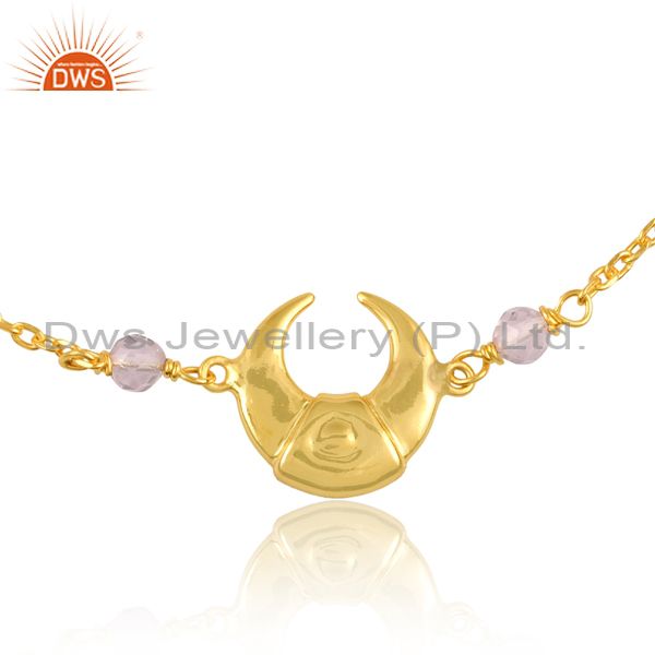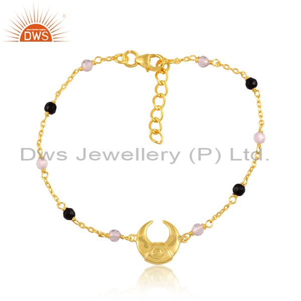 Black Onyx & Crystal Quartz 18K Gold Silver Bracelet