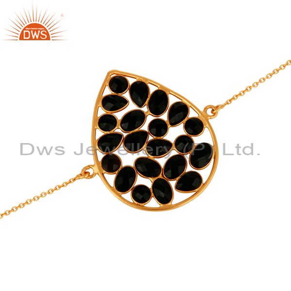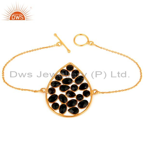 Black Onyx Gemstone 18Ct Yellow Gold Plated On Sterling Silver Chain Bracelet