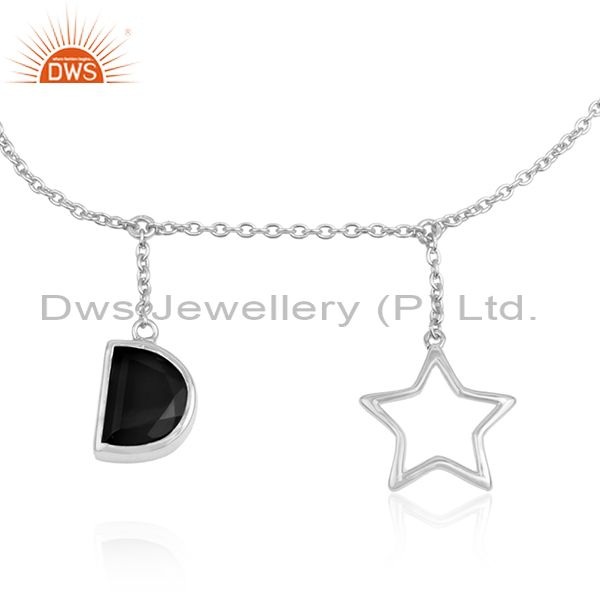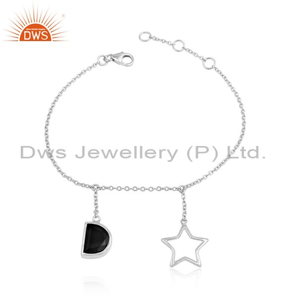 Black Onyx Gemstone Designer Sterling Silver Girls Charm Bracelet
