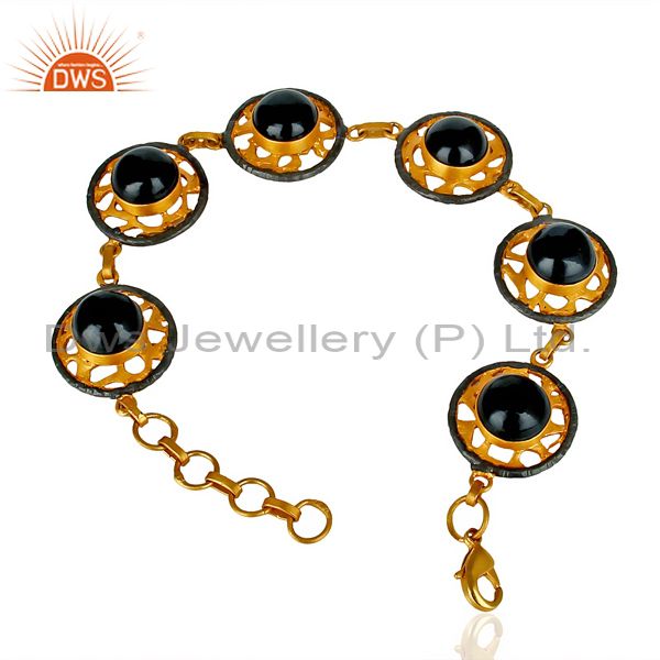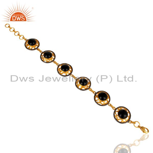 Black Onyx Gold Plated Filigree Bracelet,Adjustable Bracelet Fashion Jewelry
