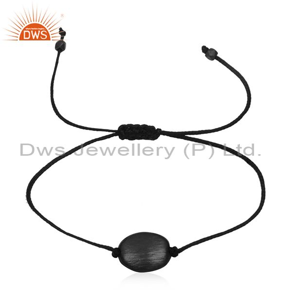 Black Rhodium Plated 925 Silver Black Cord Bracelet Wholesale Suppliers