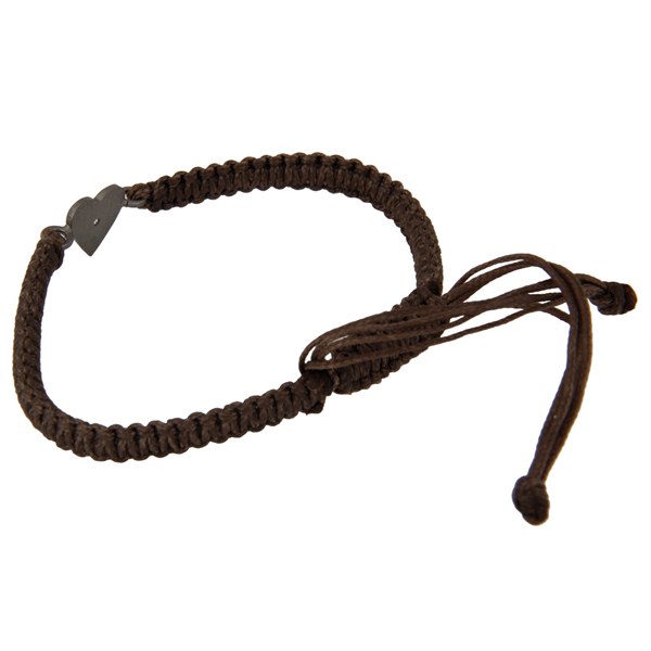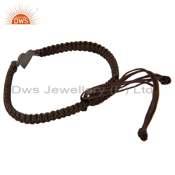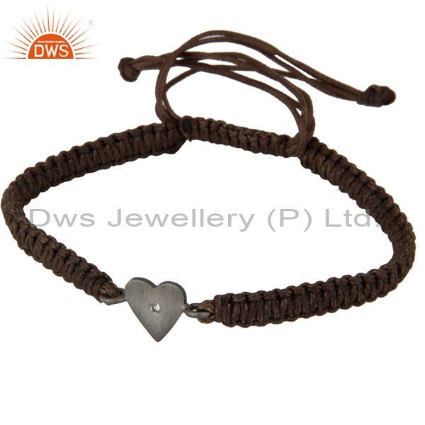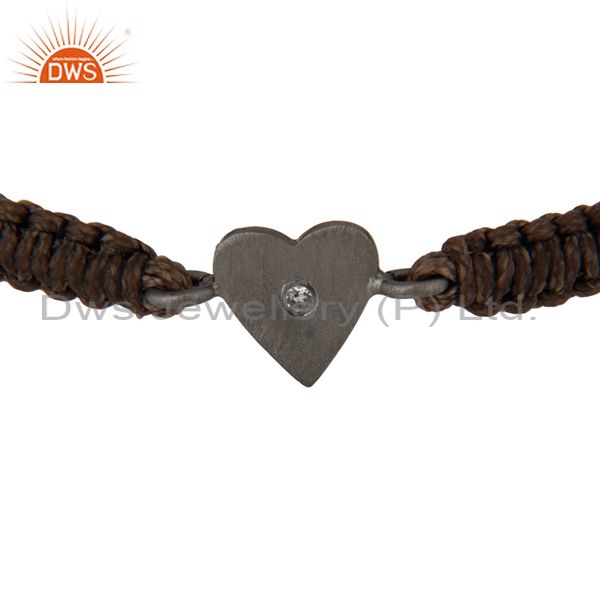 Black Rhodium Plated Sterling Silver White Topaz Heart Charm Macrame Bracelet