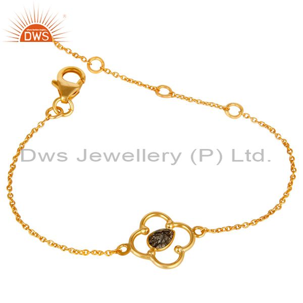 Black Rutile 18K Yellow Gold Plated Sterling Silver Gemstone Bracelet