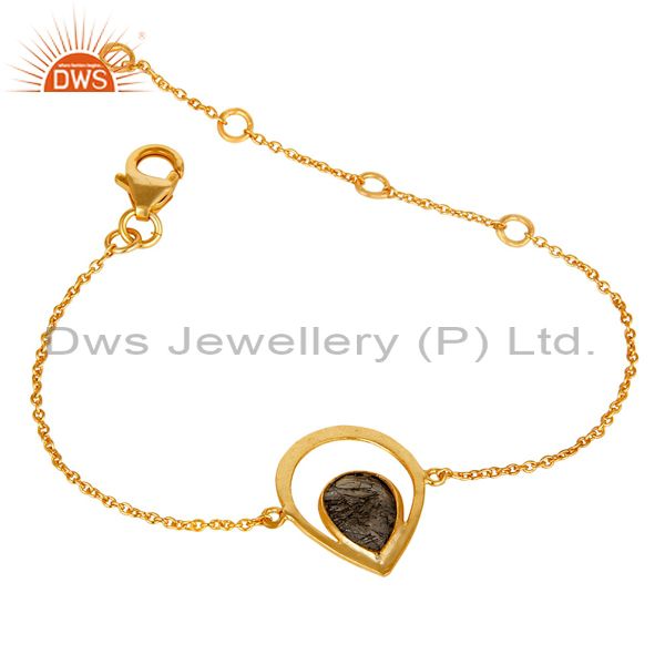Black Rutile With 18K Yellow Gold Plated Sterling Silver Gemstone Bracelet