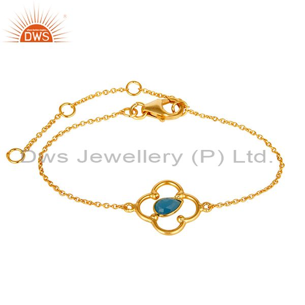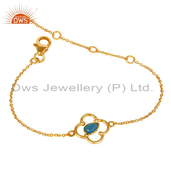 Blue Chalcedony 18K Yellow Gold Plated Sterling Silver Gemstone Bracelet
