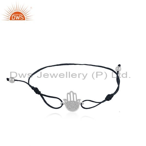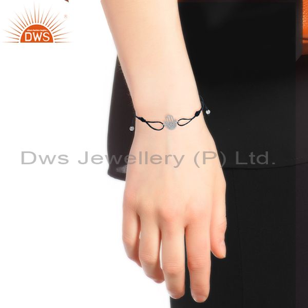 Blue Macrame 925 Sterling Fine Silver Hamsa Hand Bracelet Jewelry