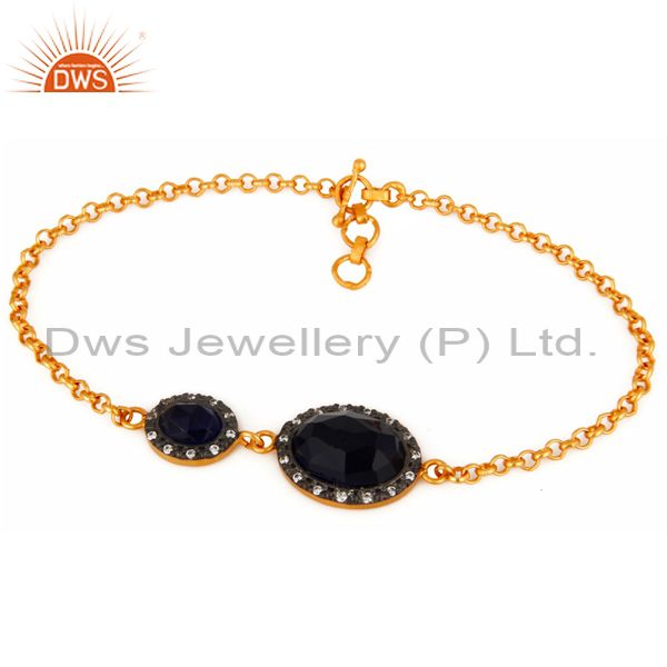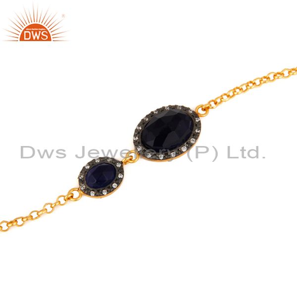 Blue Sapphire Corundum Gemstone Bracelet Made In 18K Gold Over Sterling Silver