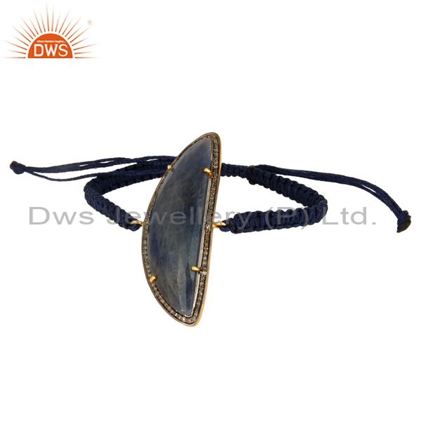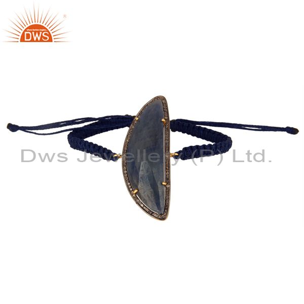 Blue Sapphire Diamond Studded Sterling Silver Macrame Bracelet Jewelry