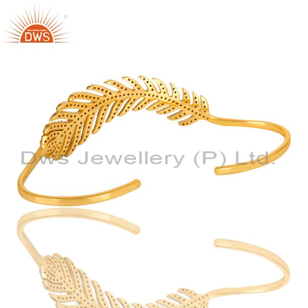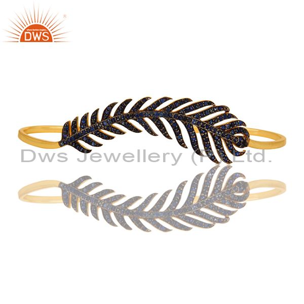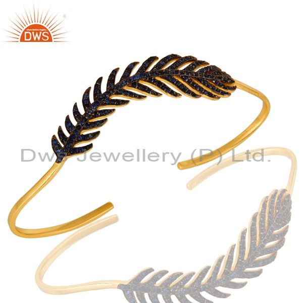 Blue Sapphire Leaf Palm Bracelet Made In 18K Gold Over Sterling Silver