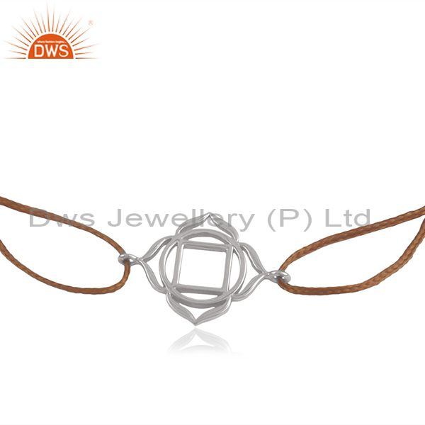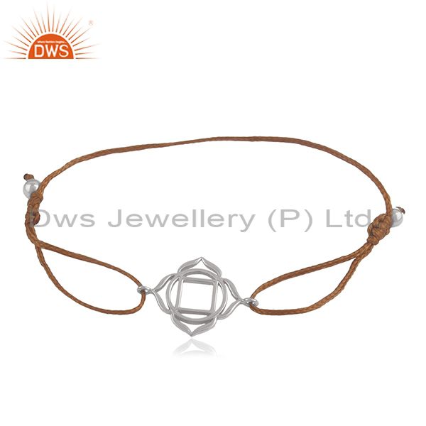 Brown Macrame White Sterling Plain Silver Charm Jewelry Bracelet