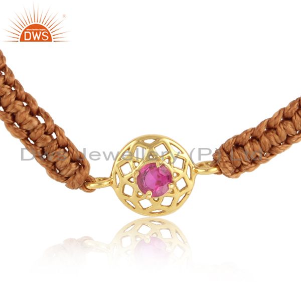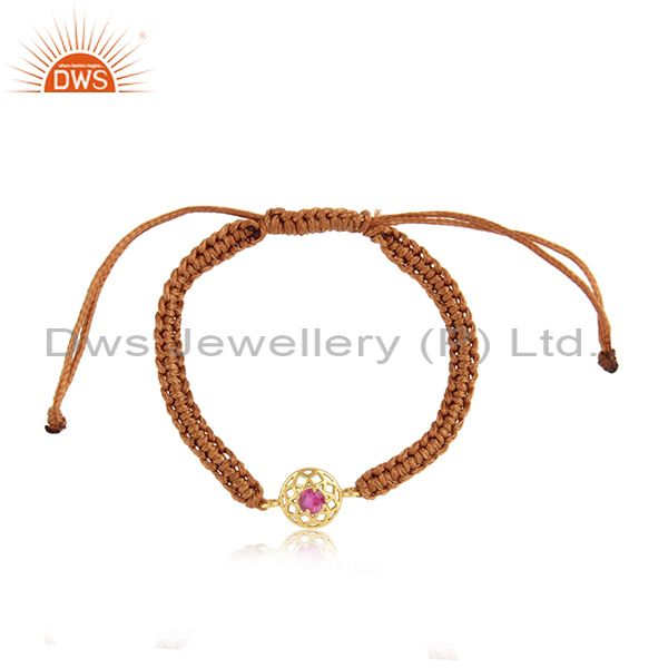 Chakra Designer Brown Cord Bracelet In Gold On Silver And Red Cz