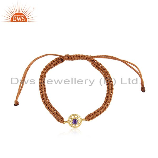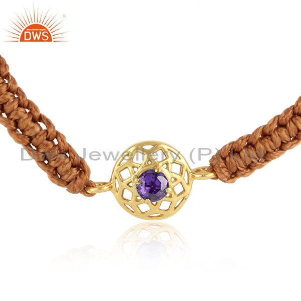 Chakra Designer Cord Bracelet In Gold On Silver And Amethyst Cz