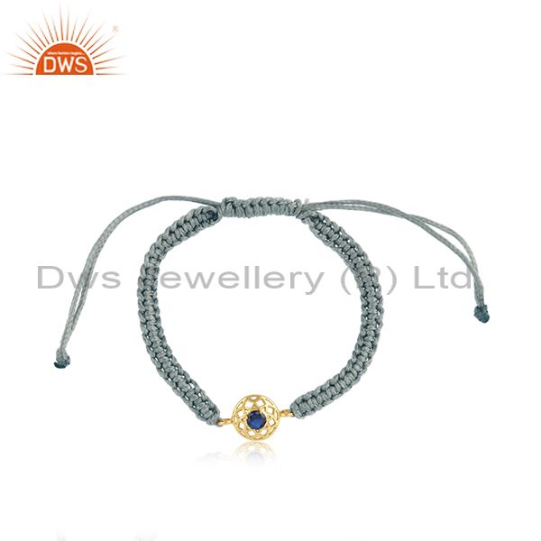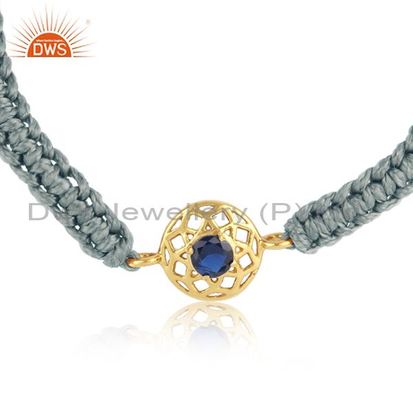 Chakra Designer Gray Cord Gold On Silver Bracelet In Blue Sapphire Cz