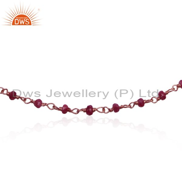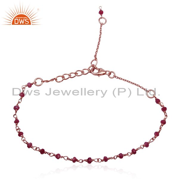 Corundum Ruby Gemstone Rose Gold Plated Silver Beaded Bracelet Wholesale