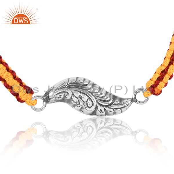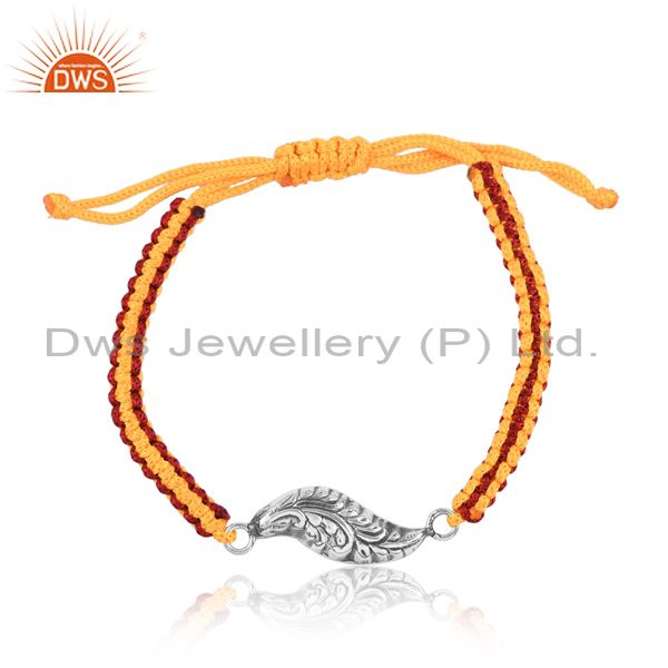 Cotton Dori And Oxidized Sterling Silver Charm Set Bracelet