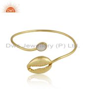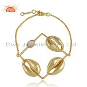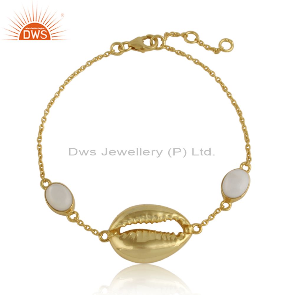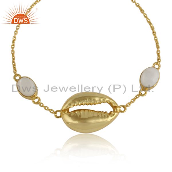 Cowrie Design Yellow Gold Plated 925 Silver Mother of Pearl Bracelet
