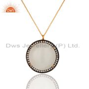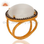 Cubic Zirconia & White Moonstone Designer Gold Plated 925 Silver Chain Bracelet