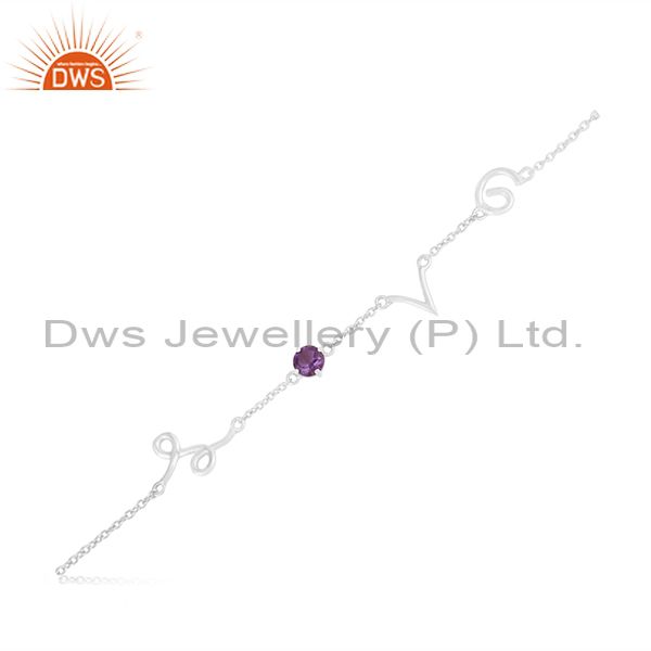 Custom Love Initial Sterling Silver Amethyst Gemstone Bracelet Manufacturer