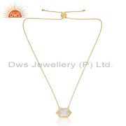 Cz And Mother Of Pearl Charm Set Gold On 925 Silver Bracelet