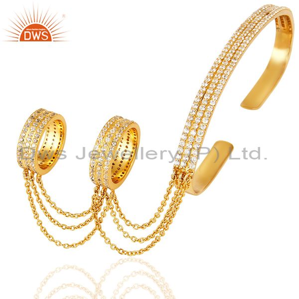 CZ Gemstone 14K Yellow Gold Plated Double Finger Palm Bracelet Exclusive Jewelry