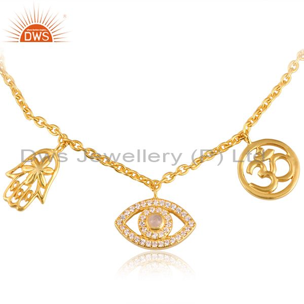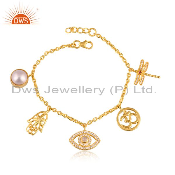 Cz, Rainbow Moon Stone, Ruby Set 14K Gold On Silver Bracelet