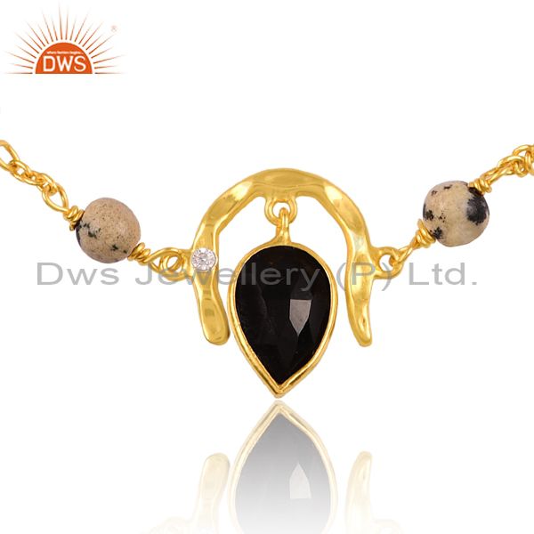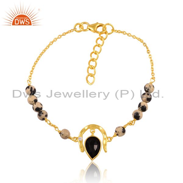 Dalmatian Jasper, Black Onyx 18K Sterling Silver Bracelet