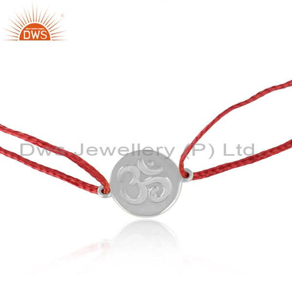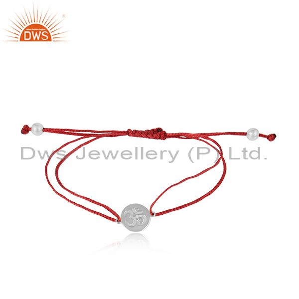 Dark Red Dori Rhodium On Silver Om Engraving Bracelet Jewelry
