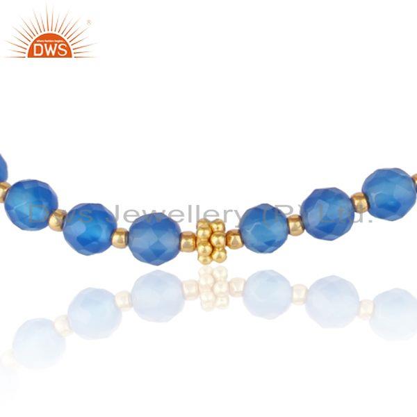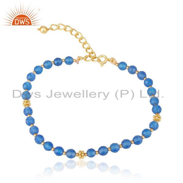 Designer Blue Chalcedony Bead Bracelet In Yellow Gold On Silver