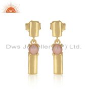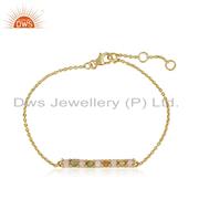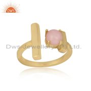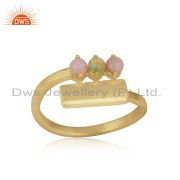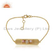 Designer Gold on Silver 925 Bar Bracelet with Ethiopian and Pink Opal