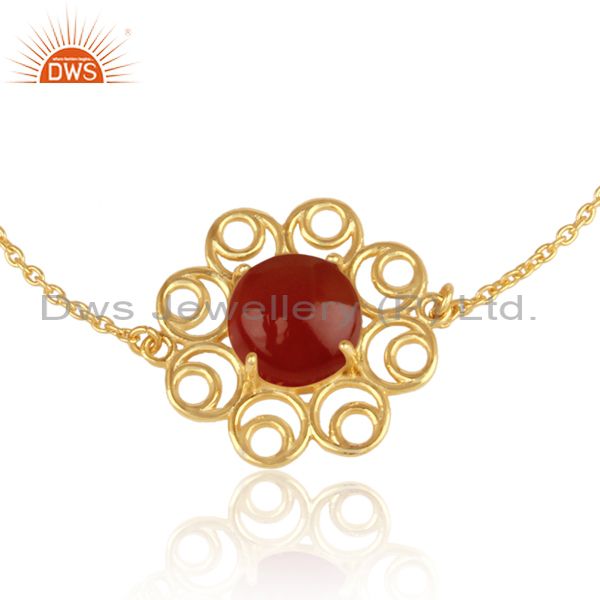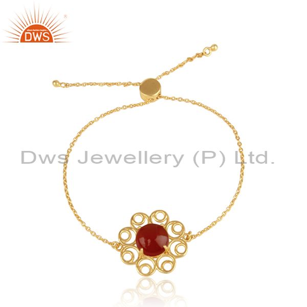 Designer Gold on Silver 925 Slider Bracelet with Red Onyx