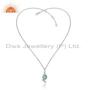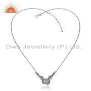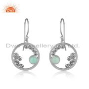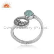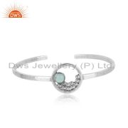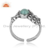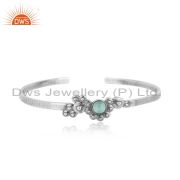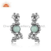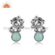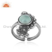 Designer Granule Bracelet In Oxidized Silver With Aqua Chalcedony
